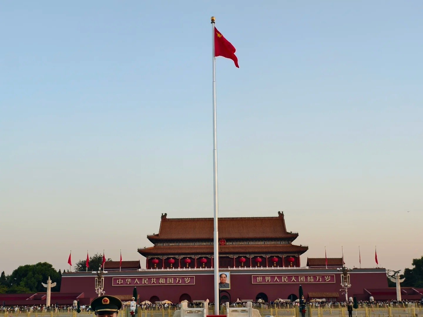 清晨起床(起床时间随天安门升国旗的时间变化),前往参加庄严的【天安门广场升国旗仪式】,听雄壮的国歌奏响,看鲜艳的五星红旗迎风飘扬。