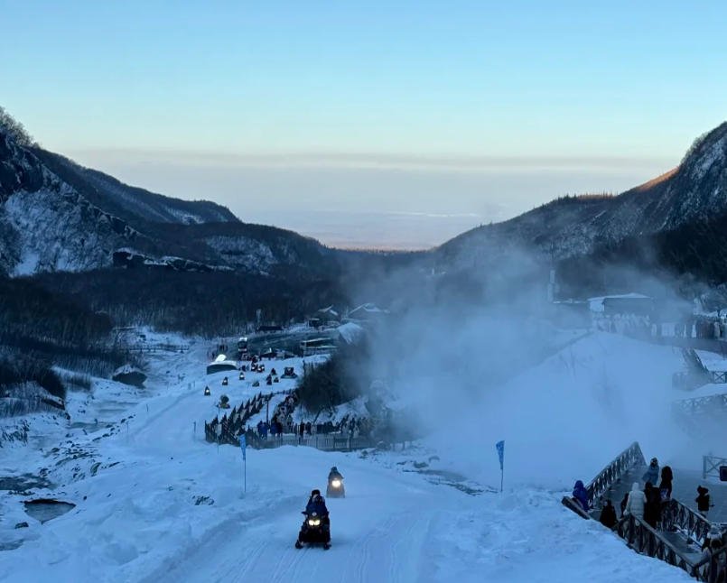 途中经过冰雪幻境休息区乘坐【丛林越野观光车】换乘【雪地摩托驰骋林海雪原】登【大秃顶子山】观赏美妙的雪景,千姿百态的雪景如诗如画。