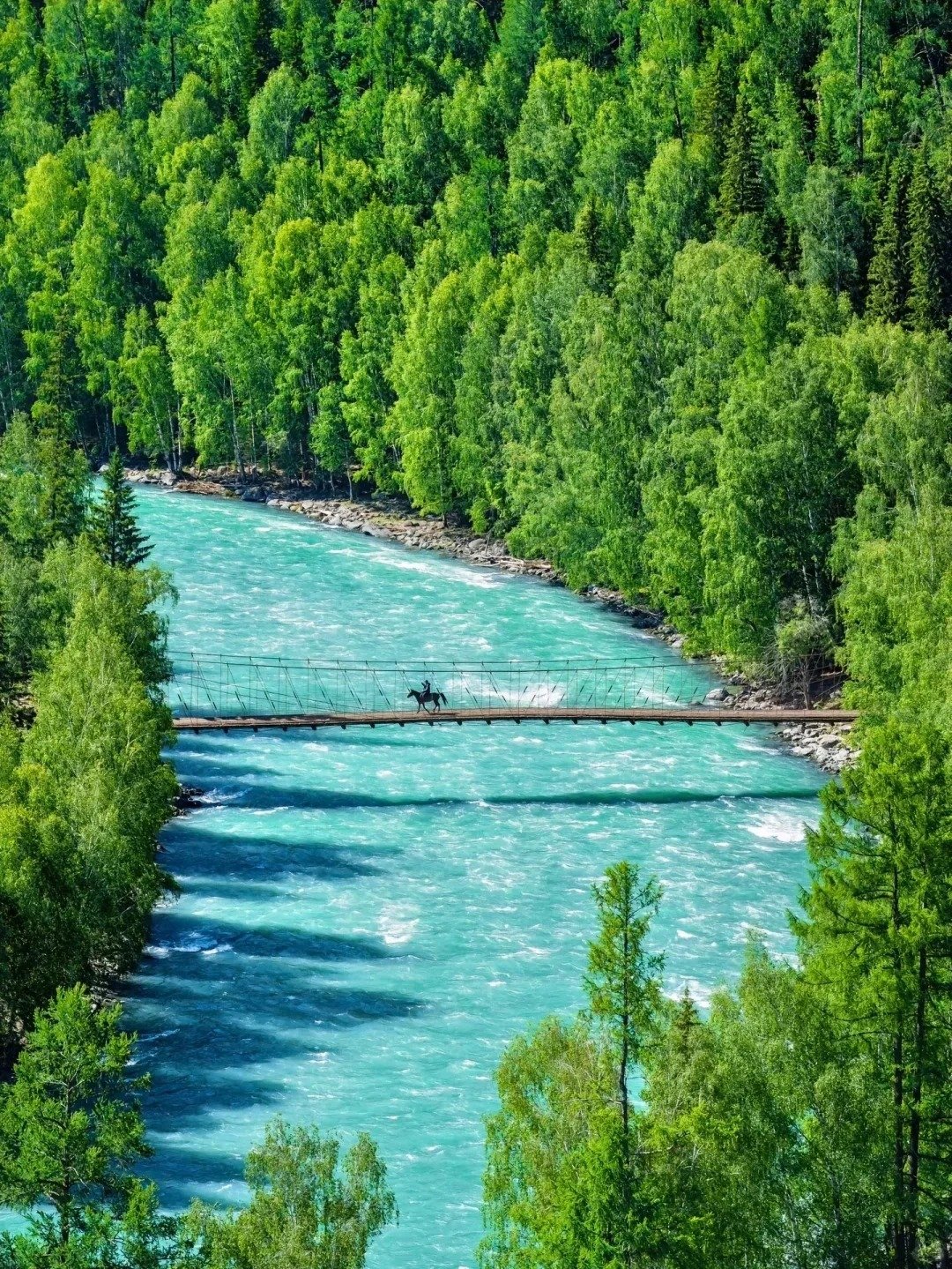 喀纳斯经典三湾轻徒步(月亮湾至卧龙湾段): 这是喀纳斯的精华徒步路段。从 月亮湾 标志性的“S”形河曲开始,沿着木栈道下行,穿行于森林与河谷之间。在 神仙湾 感受晨雾缭绕的仙境氛围(若清晨抵达更佳),最后抵达形似霸王龙的 卧龙湾。每一步都是风景,徒步强度适中,移步换景。