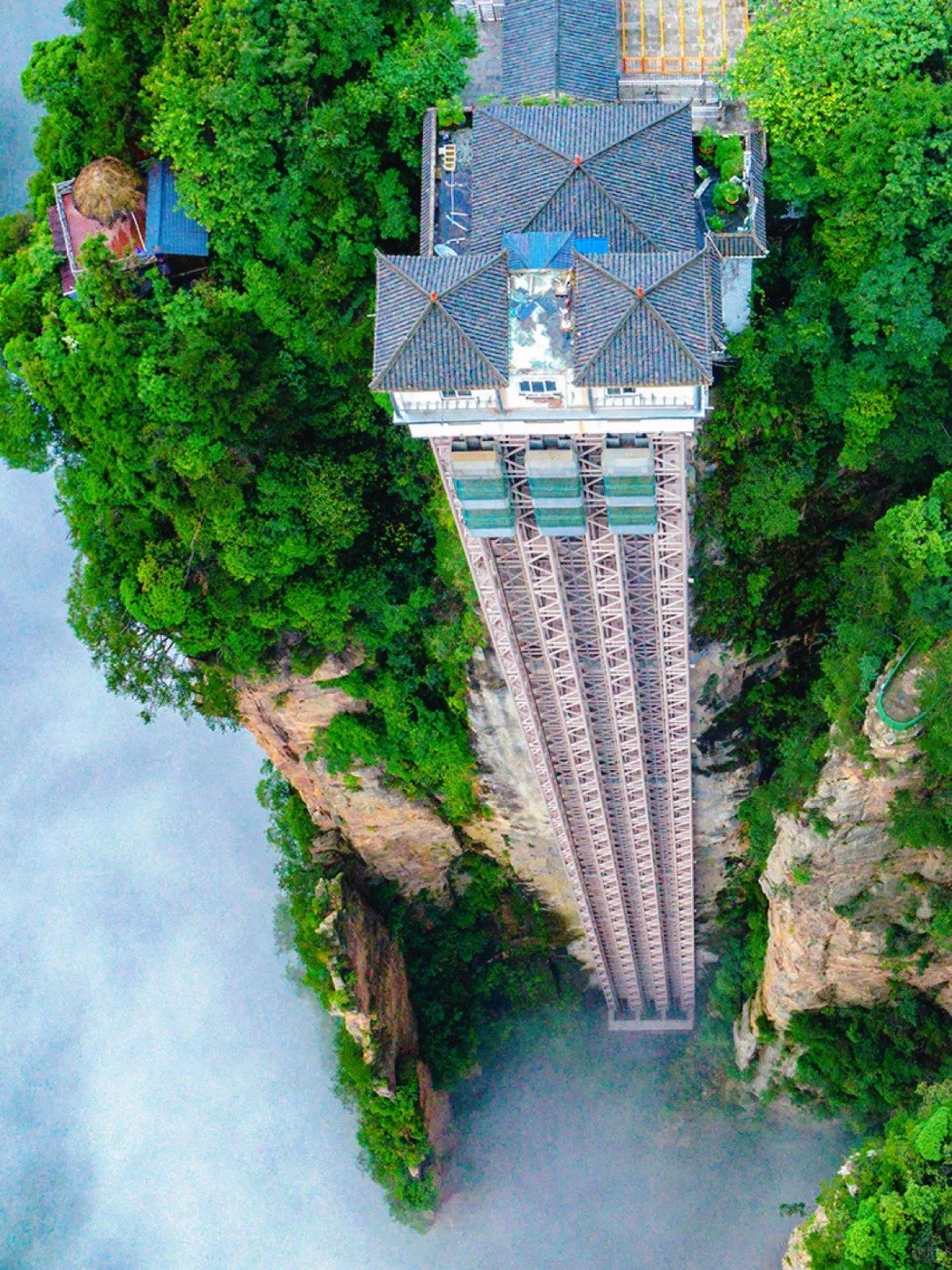 1:天门索道:索道线路斜长7455米,上下站水平高差1279米,是世界最长的单线循环脱挂抱索器车厢式索道,犹如一道彩虹飞渡“人间” “天上”,又像一条巨龙腾翔素云苍穹,依山籍壁,拔地冲天,荡气回肠,恢宏壮观,成为天门山旅游风景区“四大奇观”之一。