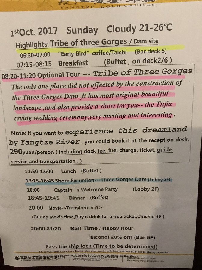 本来下午要在石宝寨停靠参观的,不过这个是自费项目,由于这趟船参加的人太少,所以取消了,居然还有这种操作,正好节省了时间,继续航行喽。