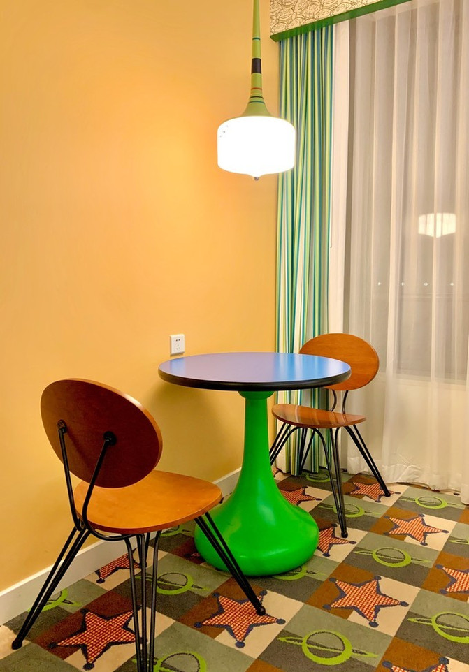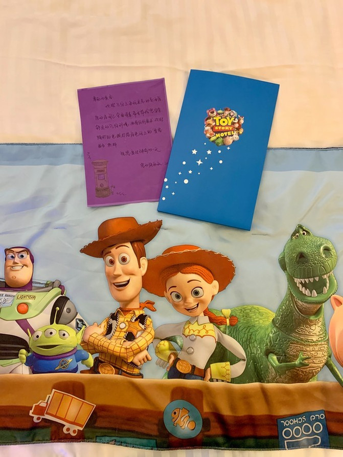 我觉得整个玩具总动员主要是在软装陈列上体现《玩具总动员》的动画元素。抛开这些装饰,酒店硬件设施上和很多快捷酒店差不多。