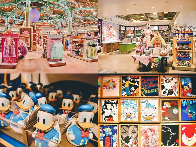虽然在迪士尼乐园里,以及玩具总动员酒店里也有商品店可购买,但是迪士尼小镇的迪士尼世界商店是商品最齐全的,包括服装、配饰、饰品、数码周边产品、玩具、收藏品、徽章、毛绒玩具,应有尽有。还有各色精品屋,在D潮流,还有配饰及数码周边产品;在D新意,有时尚和生活商品;在D时尚,有迪士尼潮流服饰。