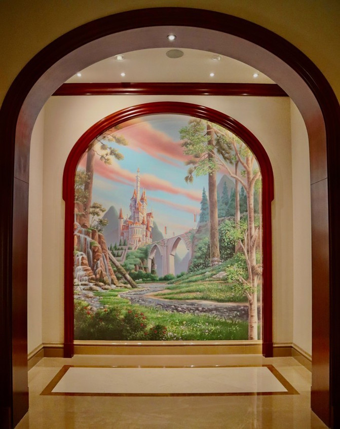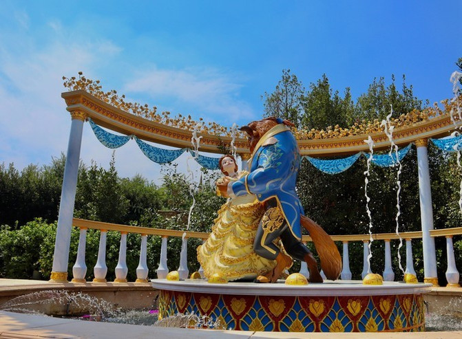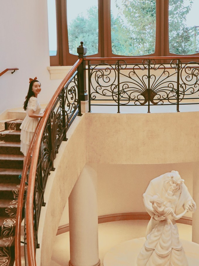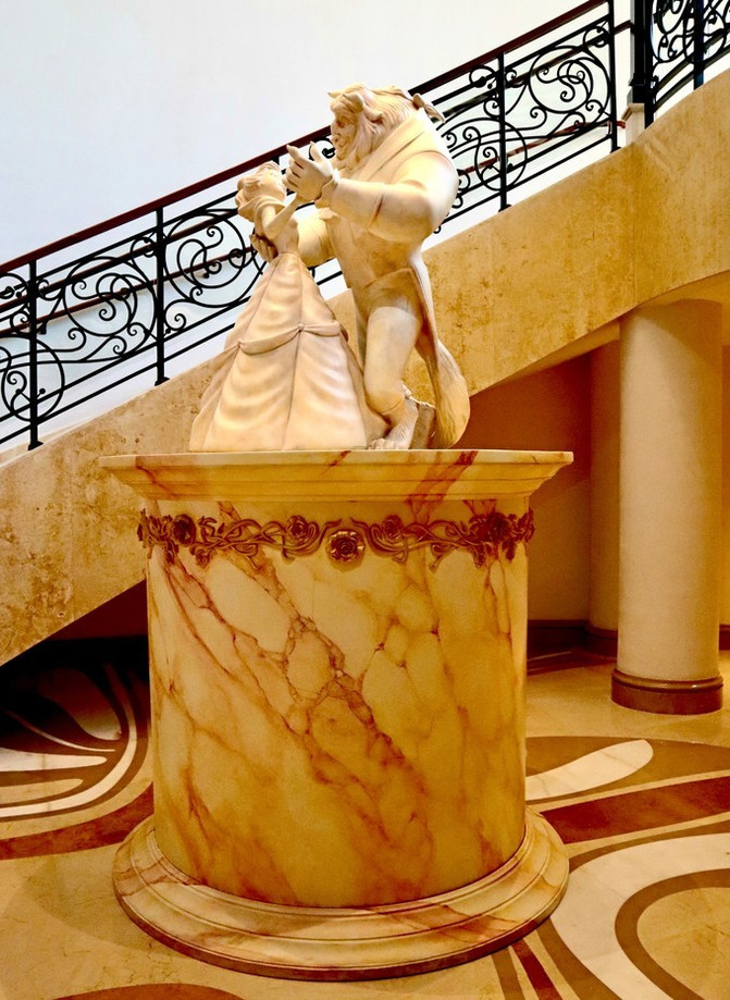 旋转楼梯走下来就看见经典的“美女与野兽”雕塑,感觉就像是来到了“野兽王子”的城堡。