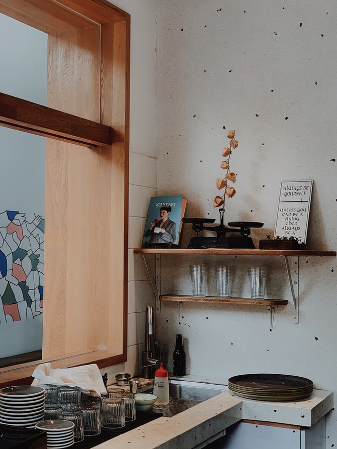 据说参考了欧洲街头“站着喝咖啡”的文化,设置了可倚靠的木质小吧台,贴心按上包袋挂钩,巧妙解决了咖啡店无座位区的弊端。如今,RAC咖啡店已经成了附近社区住民相约见面的聚集点。
