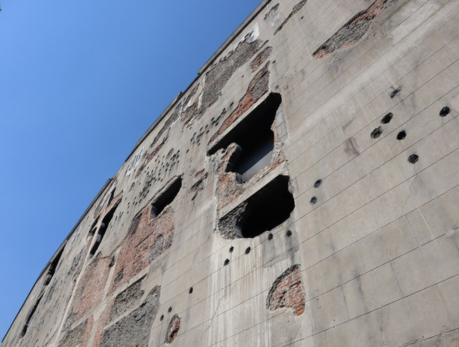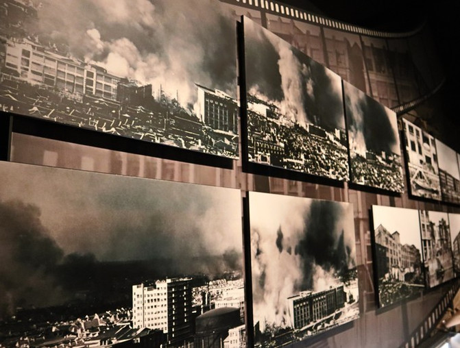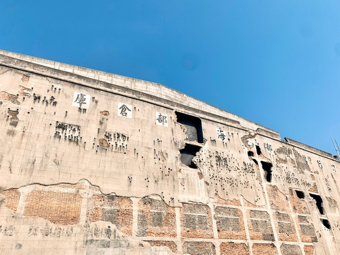 去这个地方是因为我们在去上海之前才去电影院看了《八佰》,必须要跟着电影去旅行一下。我们提前预约了时间段可进入参观。其实最震撼的那一面全是弹孔的墙面,就在马路边边,不需要预约就能看到。整个仓库现在变身博物馆,所以才需要预约进入参观。如果只是冲着这面墙去的,大可不必预约。