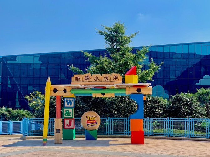 相比于上海迪士尼乐园酒店,玩具总动员酒店偏向于可爱风格。其主题取材于迪士尼·皮克斯系列电影《玩具总动员》,有800间客房。酒店外型类似数字8及“无限”符号。数字8在中国寓意了好运,而在酒店外墙上的云朵图案也同样含有“祥云”的吉祥寓意。