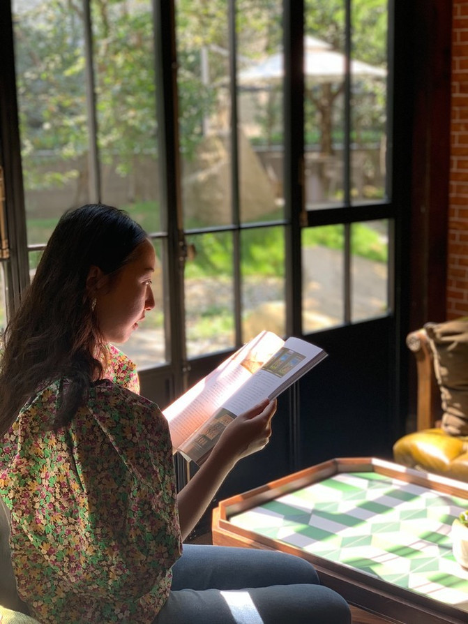 这个能看见室外花园的阳台很出片。