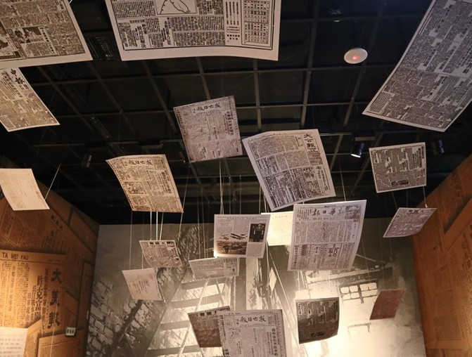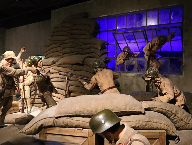 展览馆里有很多历史老照片、书信,还有当时四行仓库及周围环境的沙盘,以及不少用人物蜡像还原的战斗场景。