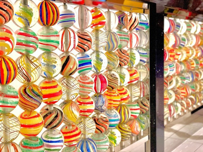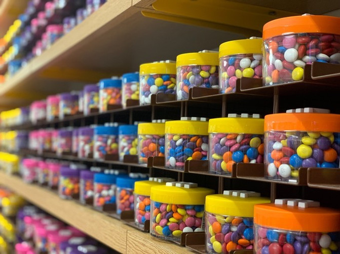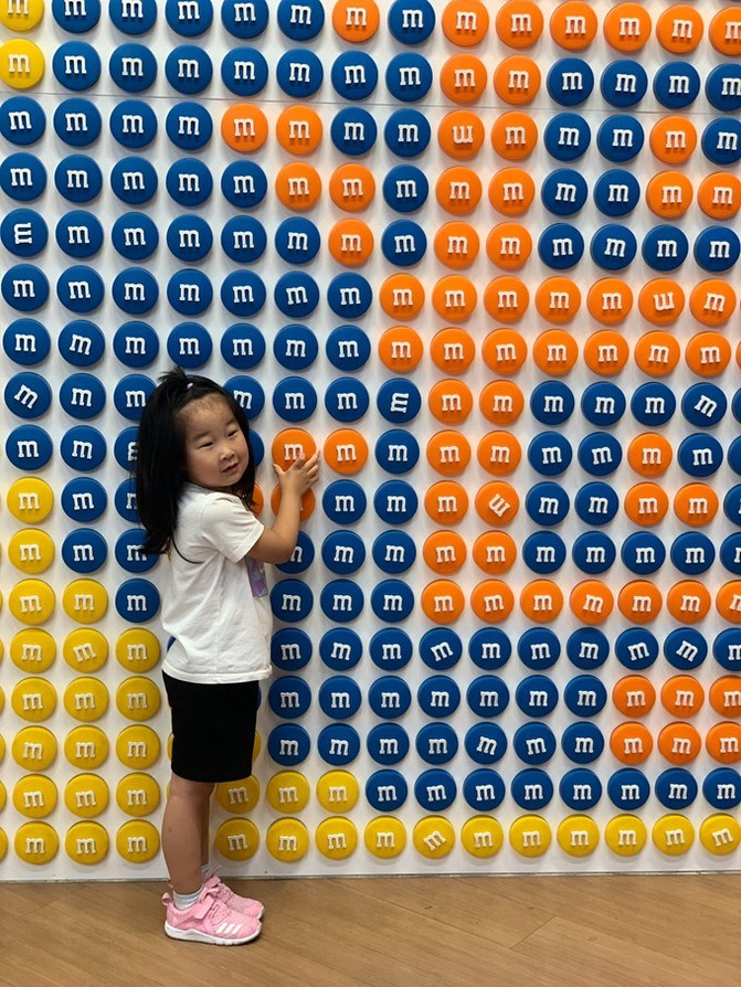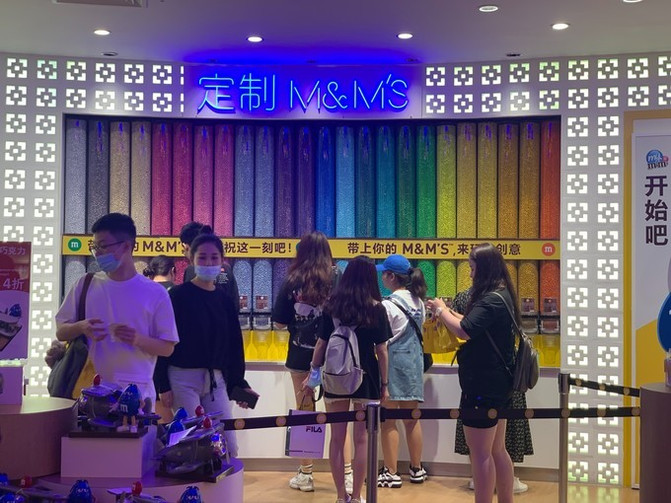 上海这家巧克力长城拥有132根玻璃长罐,是全世界最长的 M&M’S 巧克力墙。