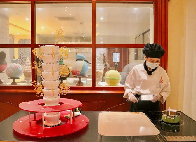 门口有传统中式糖画现场制作,重现迪士尼人物,免费领取哟。