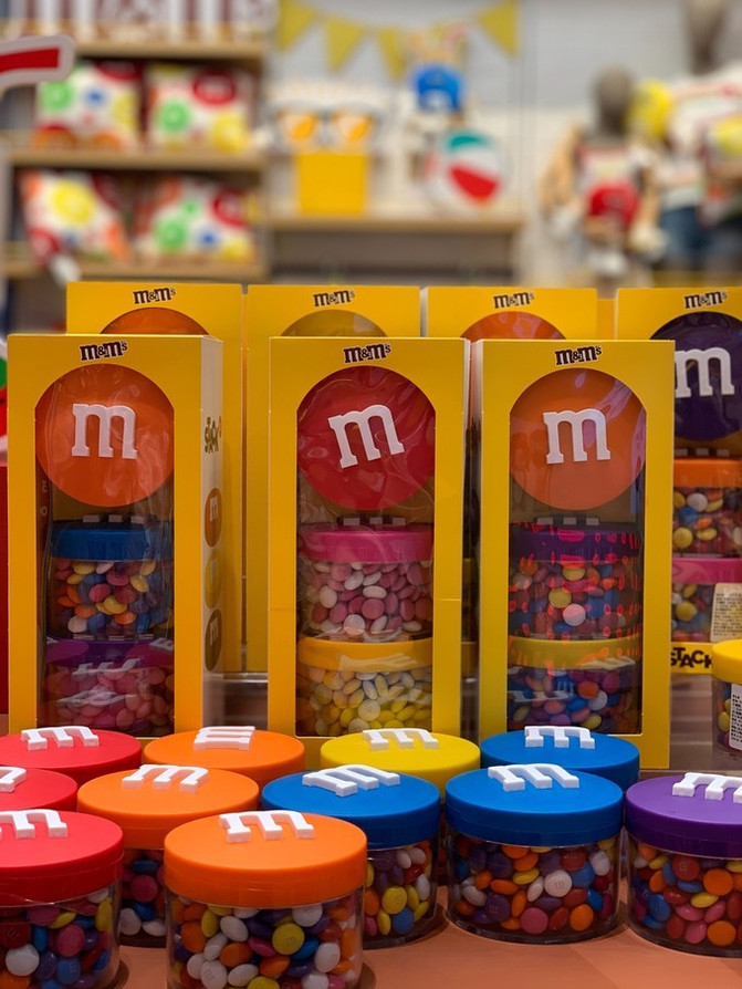 这里有22种颜色和三种口味(牛奶巧克力、花生及巴旦木);以及多种周边商品,包括服装、厨房用具、毛绒制品,以及以上海和中国为主题而特别设计的马克杯、听罐和T恤等M&M’S®品牌产品。