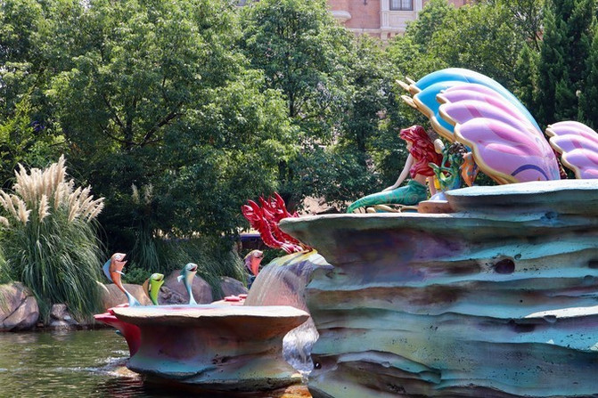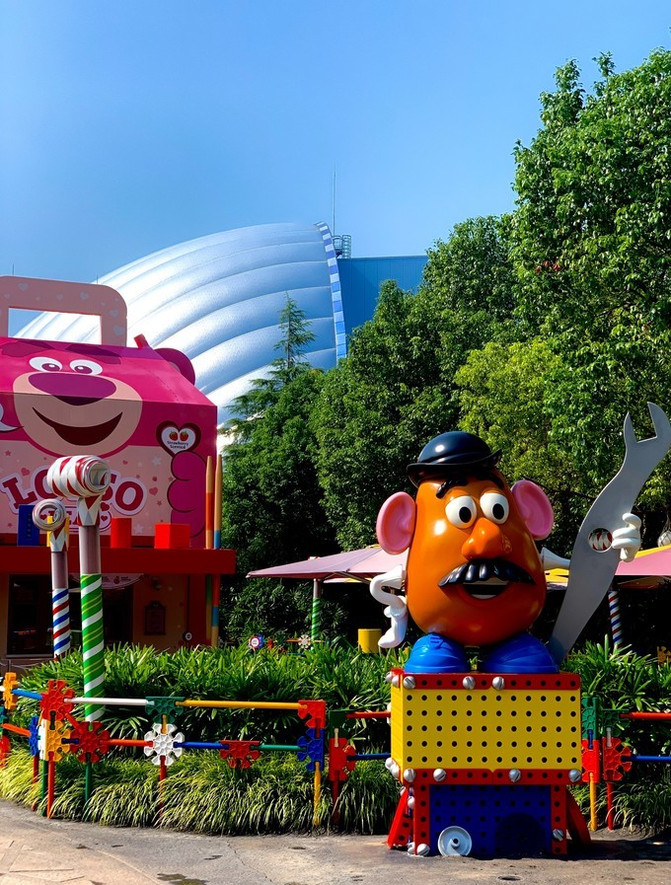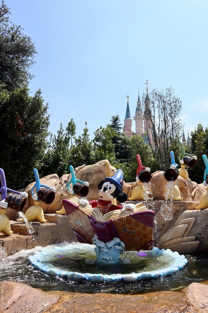 第一天办理好入住上海迪士尼乐园酒店后,就坐着接驳车来到迪士尼小镇先把装备补齐。“迪士尼小镇”有七个以中国传统琉璃工艺打造的米奇形象。这些专为“迪士尼小镇”打造的雕像由中国艺术家制作完成,高1米至1.2 米不等。七种颜色的雕像分别代表了中国五行元素(金、木、水、火、土),及中国文化中象征着和谐的龙和凤。