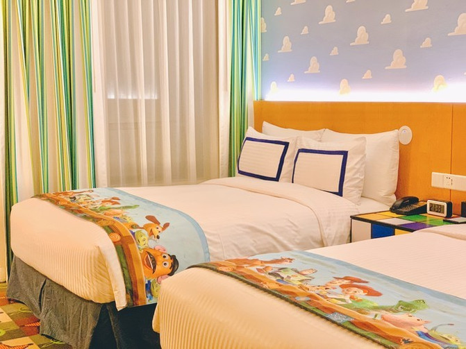 选择入住在玩具总动员酒店的好处有哪些?我再次为你总结以下几点:1 价格相较上海迪士尼乐园酒店便宜一半,我们官网订成1150元/晚,含15%服务费2 距离相较上海迪士尼乐园酒店近,适合无尊享卡游客提前进入。因为哪怕不能早起排队等车票,自己步行其实也很近。3 酒店往返乐园当然也有免费穿梭巴士,提前1小时入园,有专用通道。4 在酒店礼宾部购买门票,会有一个热门游玩项目尊享票5 房卡/乐园卡都不需退回,可以留作纪念品6 偶遇胡迪,翠丝,巴斯光年和你打招呼哟7 在乐园内的迪士尼商店购买的商品(除“水晶珍品”商店外),以及在迪士尼小镇的迪士尼商店购买的商品,可以免费递送至其下榻的玩具总动员酒店内的大熊百货。8 酒店宾客的行李可寄存于上海迪士尼乐园主入口或玩具总动员酒店内。