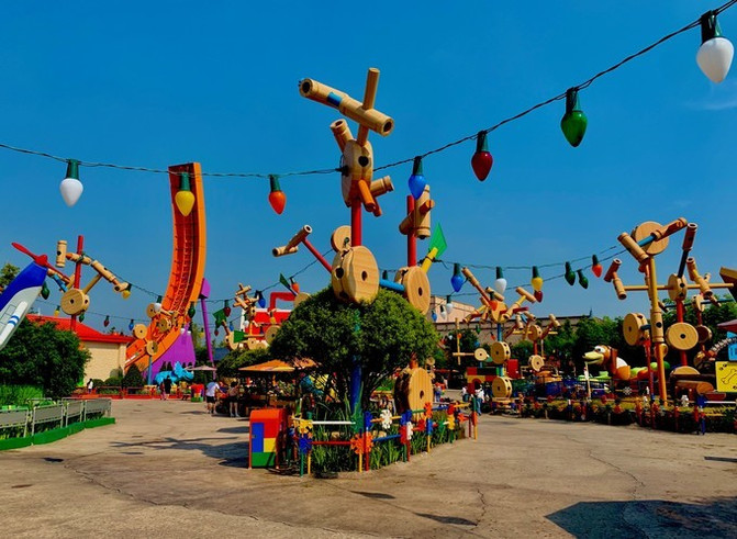 在上海迪士尼乐园,一共有七大乐园,米奇大街、奇想花园、梦幻世界、探险岛、宝藏湾、明日世界和迪士尼·皮克斯玩具总动员主题园区。