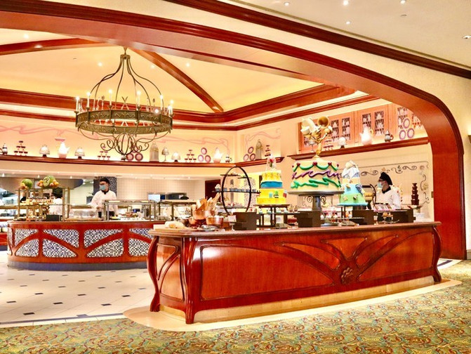 住在迪士尼酒店的另一个原因就是晚上到负一楼的卢米亚厨房吃自助餐。