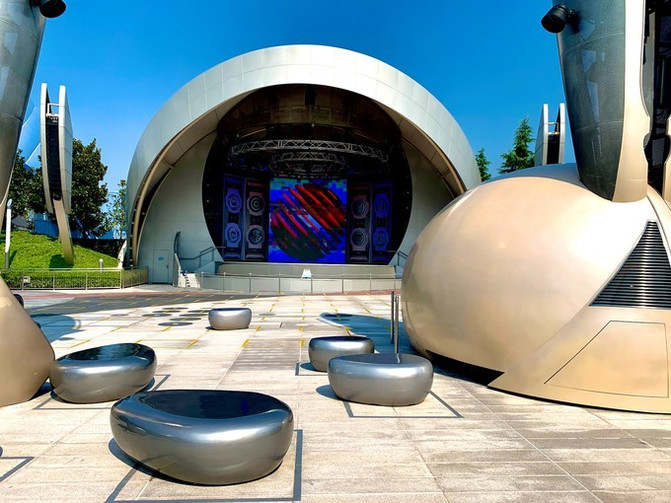 “明日世界”有一个创意舞台,这里是乐队、DJ、艺术家和舞者们大展才艺的地方,由于疫情没有对外开放。
