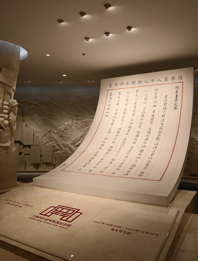 进门处的一封家书,来自八百壮士副团谢晋元奔赴淞沪战场之前写给妻子凌维诚的一封信,字里行间都能感受到他为国牺牲的大国情怀和对妻子的思念和愧疚,很感动。