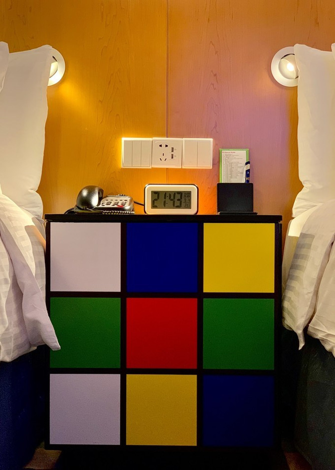 最可爱的是床头柜是魔方设计。