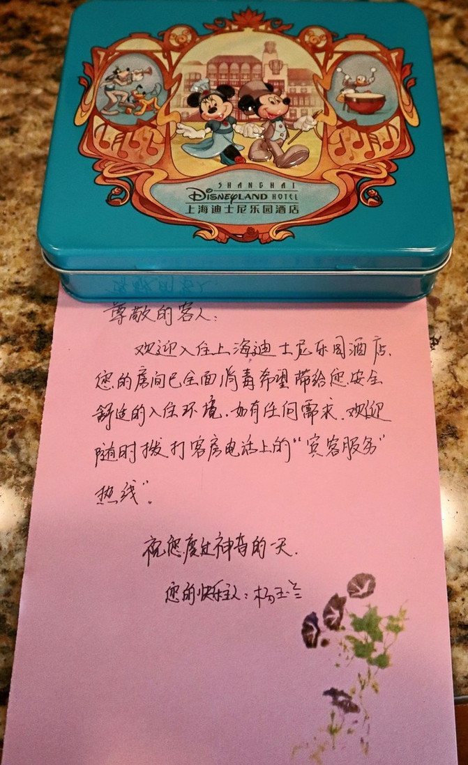 我们是提前在迪士尼乐园酒店官网上订购的1晚住宿,在前台给到身份证办理入住。2300元/晚,含15%服务费。