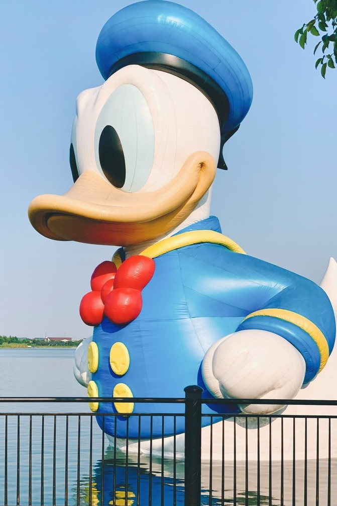 最出名的要数湖畔的充气唐老鸭。