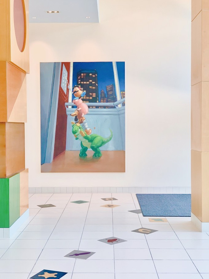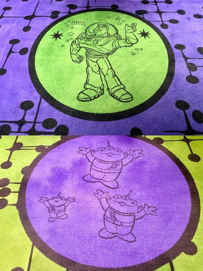 整个房间走廊的地毯全是由玩具总动员的IP形象印制。