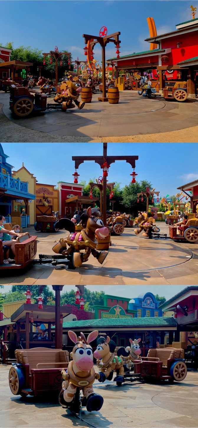 我妹妹说,她不懂“巴斯光年星际营救”的存在意义。在我们看来,其实这个游戏略显幼稚。就是坐在有轨火车上拿着枪瞄准“坏人”目标打打打打打打,然后有分数计算。