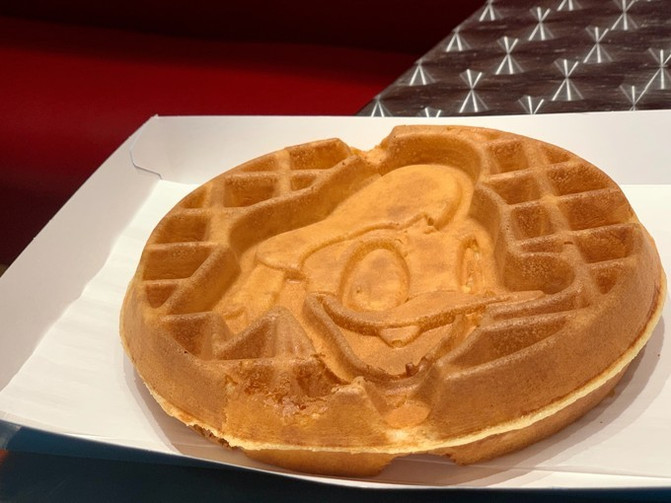 我们在甜品店吃了一个唐老鸭的华夫饼和米奇冰淇淋。