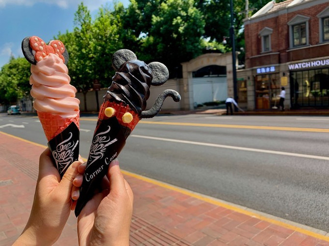 就在武康大楼底楼,有一家网红冰淇淋店——CORNER CONE GELATO酷矿手作霜淇淋。