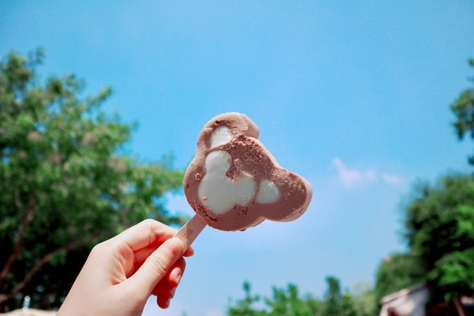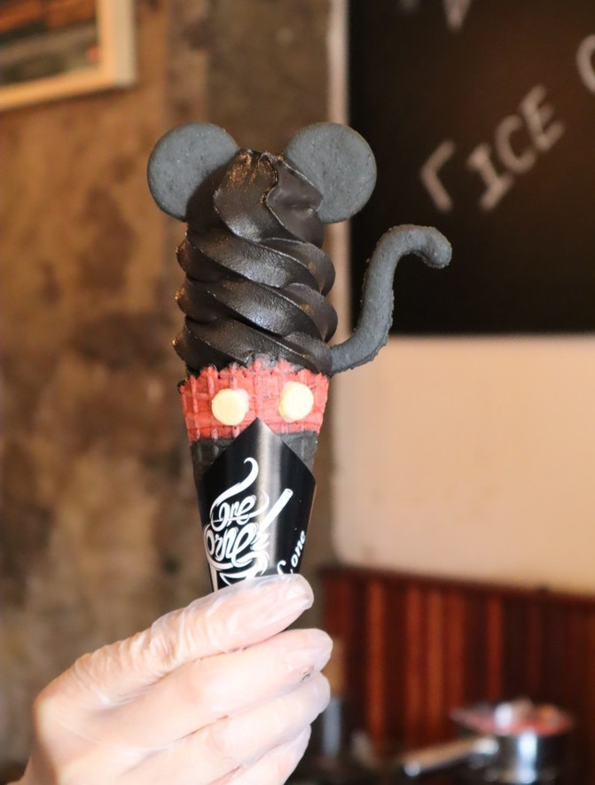 黑巧克力口味的米奇,黑黑的冰淇淋,啃完一口整个嘴巴和牙齿都是黑的,巨巨巨巨搞笑,没带餐巾纸的就不要买米奇了。